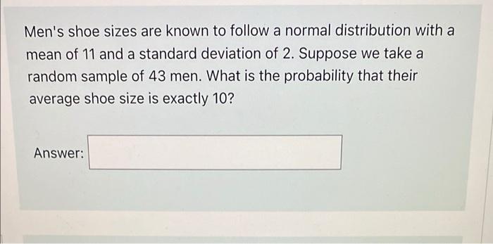 Solved The Average Shoe Size For Adult Men In Someplace Usa Chegg Com